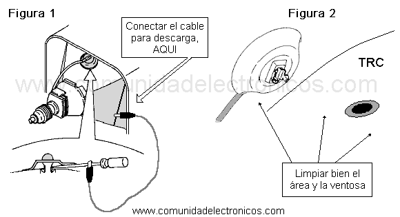 Para evitar una muy desagradable experiencia se debe tener la precaución de descargar el TRC, siempre que sea necesario conectar, desconectar o manipular el conector de Alto Voltaje. Para ello, se puede proceder como se haría con cualquier condensador cargado, es decir: cortocircuitarlo.