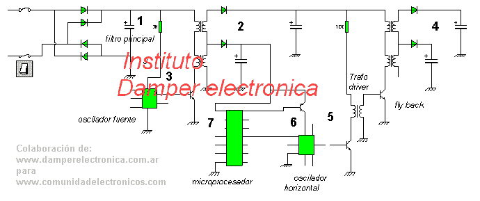 la etapa vertical, 185 volts para los cátodos de video, 300 volts de grilla