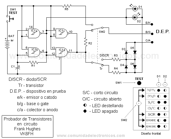 Recuerde este diseño prueba "en-circuito" (no necesita desoldar ninguna conexión, para aislar un semiconductor sospechoso!).